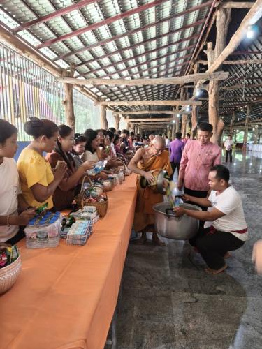 ในการนี้ นายชาติพิชิต จารุการ พัฒนาการอำเภอโนนคูณ พร้อมด้วยเจ้าหน้าที่พัฒนาชุมชนอำเภอฯ ร่วมแต่งกายด้วยชุดผ้าไทยและผ้าพื้นเมือง ทำบุญตักบาตรข้าวสารอาหารแห้งประสงฆ์ โดยสิ่งของที่ได้จากการใส่บาตรบางส่วนนำไปมอบให้กับครัวเรือนกลุ่มเปราะบาง ครัวเรือนยากจนผู้ด้วยโอกาส (เป้าหมาย ThaiQM และ TPMAP) ในพื้นที่ กิจกรรมครั้งที่จัดขึ้น ณ วัดบ้านหนองกุง หมู่ที่ 1 ตำบลหนองกุง อำเภอโนนคูณ จังหวัดศรีสะเกษ