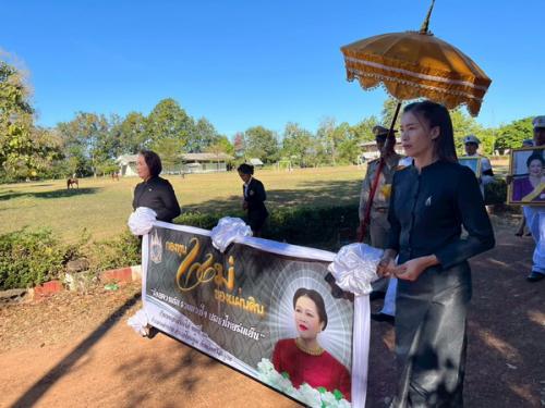 วันที่ 15 ธันวาคม 2568 เวลา 09.00 น. ณ ศาลาประชาคมบ้านหนองสนมใต้ หมู่ที่ 11 ตำบลเหล่ากวาง อำเภอโนนคูณ จังหวัดศรีสะเกษ นายอำนวยโชติ มาหินกอง นายอำเภอโนนคูณ เป็นประธานในพิธีอัญเชิญเงินขวัญถุงพระราชทานกองทุนแม่ของแผ่นดิน บ้านหนองสนมใต้ หมู่ที่ 11 ตำบลเหล่ากวาง หัวหน้าส่วนราชการ ตำรวจ ผู้บริหาร สมาชิก และเจ้าหน้าที่องค์กรปกครองส่วนท้องถิ่น คณะกรรมการและสมาชิกกองทุนแม่ของแผ่นดินบ้านหนองสนมใต้ และเครือข่ายกองทุนแม่ของแผ่นดินอำเภอโนนคูณ ร่วมขบวนแห่พิธีอัญเชิญเงินขวัญถุงพระราชทานกองทุนแม่ของแผ่นดิน พิธีแลกเงินและต่อยอดเงินขวัญถุงกองทุนแม่ของแผ่นดิน เบื้องหน้าพระบรมฉายาลักษณ์สมเด็จพระนางเจ้าสิริกิติ์ พระบรมราชินีนาถ พระบรมราชชนนีพันปีหลวง เพื่อสร้างพลังให้ชุมชนในการป้องกันและแก้ไขปัญหายาเสพติด ให้เกิดประโยชน์สูงสุด เสริมสร้างความเข้มแข็งของหมู่บ้านในการเฝ้าระวังยาเสพติดอย่างยั่งยืน เป็นสิริมงคลแก่ชุมชนที่ได้รับเงินขวัญถุงพระราชทาน และใช้ในการพัฒนาให้กองทุนแม่ของแผ่นดิน เป็นศูนย์รวมจิตใจของคนในชุมชน
